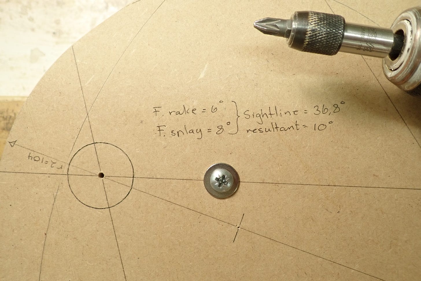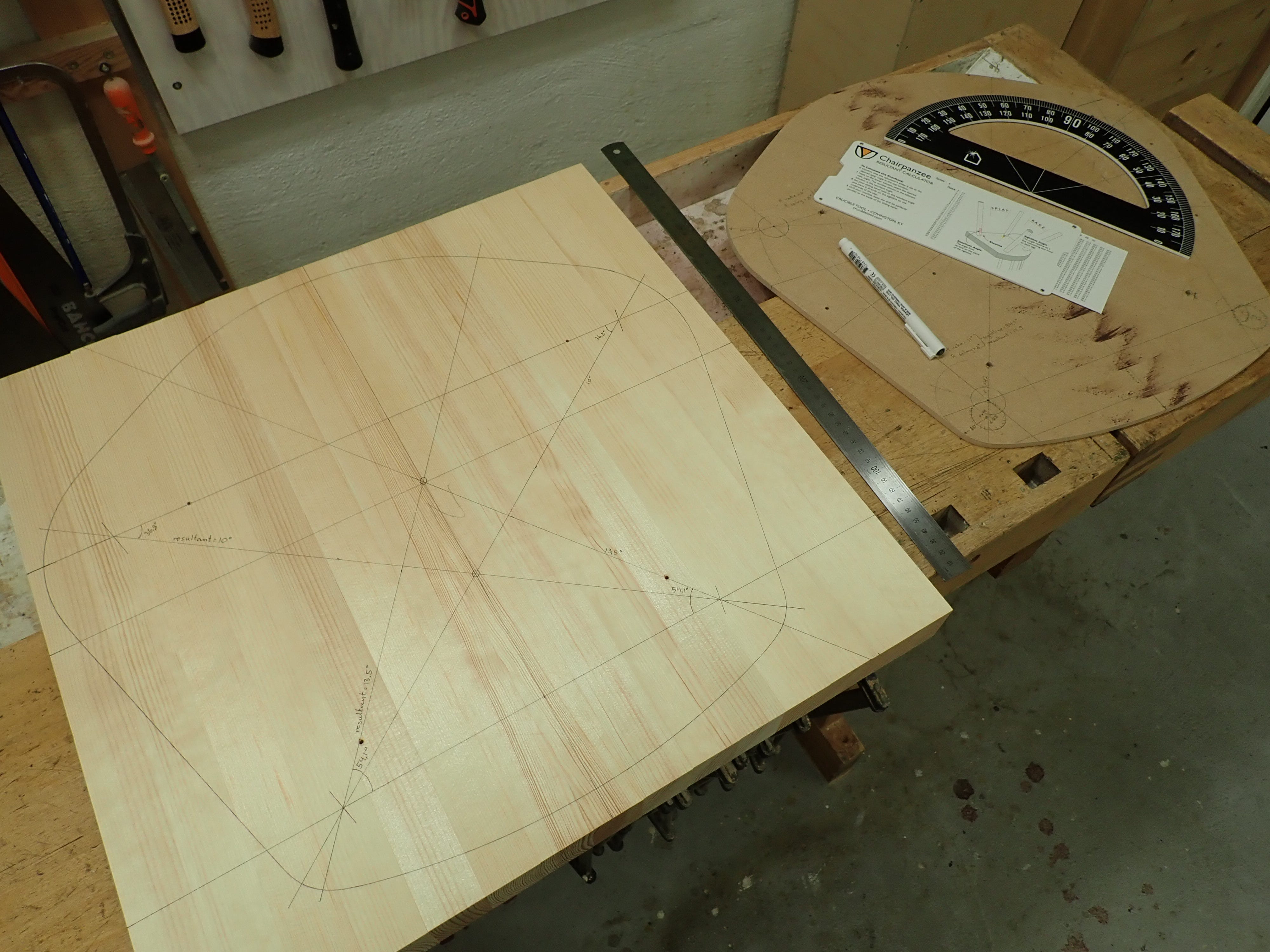 After deciding the rake & splay of the legs, I used the Chairpanzee mechanical calculator to figure out the sightlines and resultant angles — a brilliant tool from Crucible Tools.